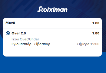 19:00 Εγιουπσπόρ – Σίβασπορ: over 2,5 (1.80) / 10 units
